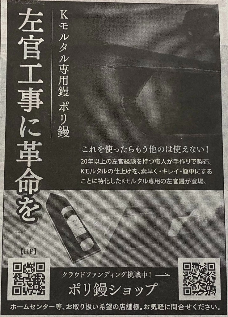 横須賀市を拠点とする“ポリ鏝ショップ”はこの度、Kモルタルの補修や下地補修の左官コテを探している方向けの専門サイトを開設いたしました。